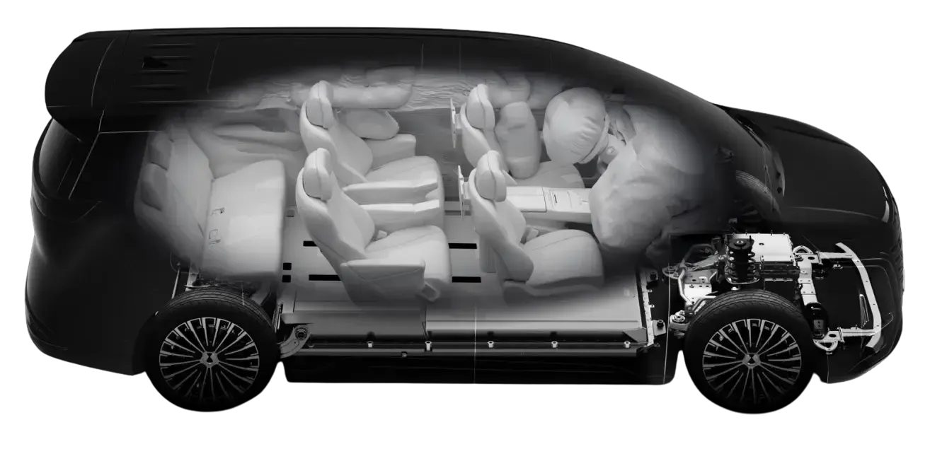 Với túi khí bao phủ mọi hàng ghế, bao gồm túi khí bên dài và túi khí trung tâm, mọi hành khách đều được bảo vệ tối đa.